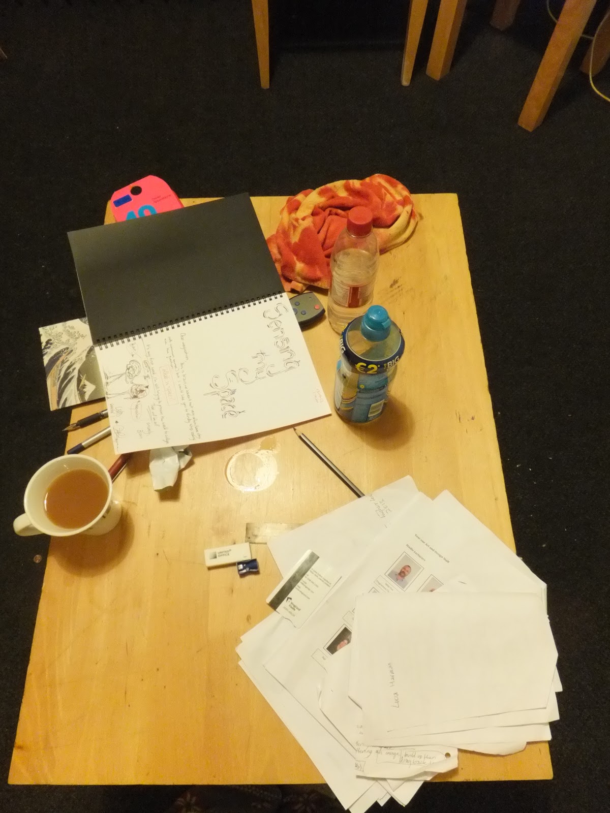 Before I went to bed I took a few photos of my immediate space, where I'd been working for the night, which was the coffee table in my new sitting room, it means I cant use the internet while I work but I just hate the chair in my bedroom.